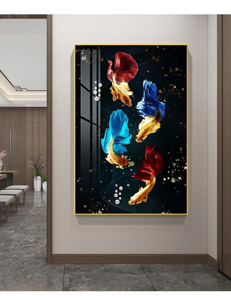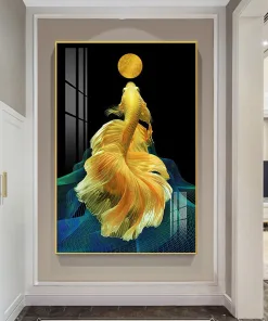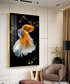 Tranh Treo Tường Nghệ Thuật Cá Betta – thiết kế hiện đại, hình ảnh cá Betta tượng trưng cho năng lượng và tài lộc. Tranh in sắc nét trên Tráng gương cao cấp, khung gỗ chắc chắn, bền đẹp theo thời gian. Phù hợp trang trí phòng khách, phòng làm việc, studio.